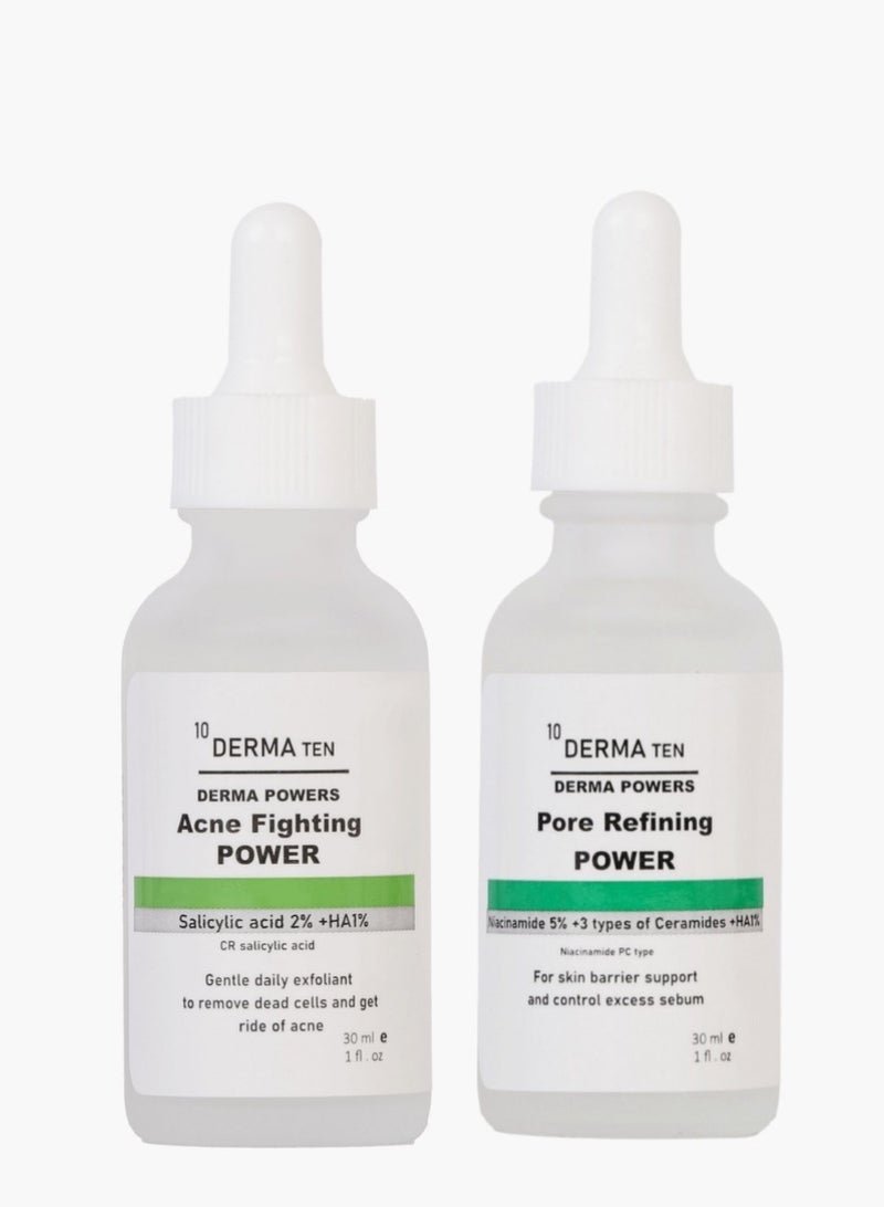 DERMA TEN Oily Skin Bundle Salicylic Acid 2%+HA 1% + Niacinamde 5% + 3 Types of Ceramides
